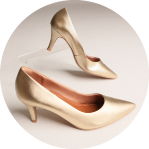 Scarpin com salto 7cm em couro, na cor dourada. Palmilha antibacteriana. Acolchoado internamente proporcionando maciez e conforto.